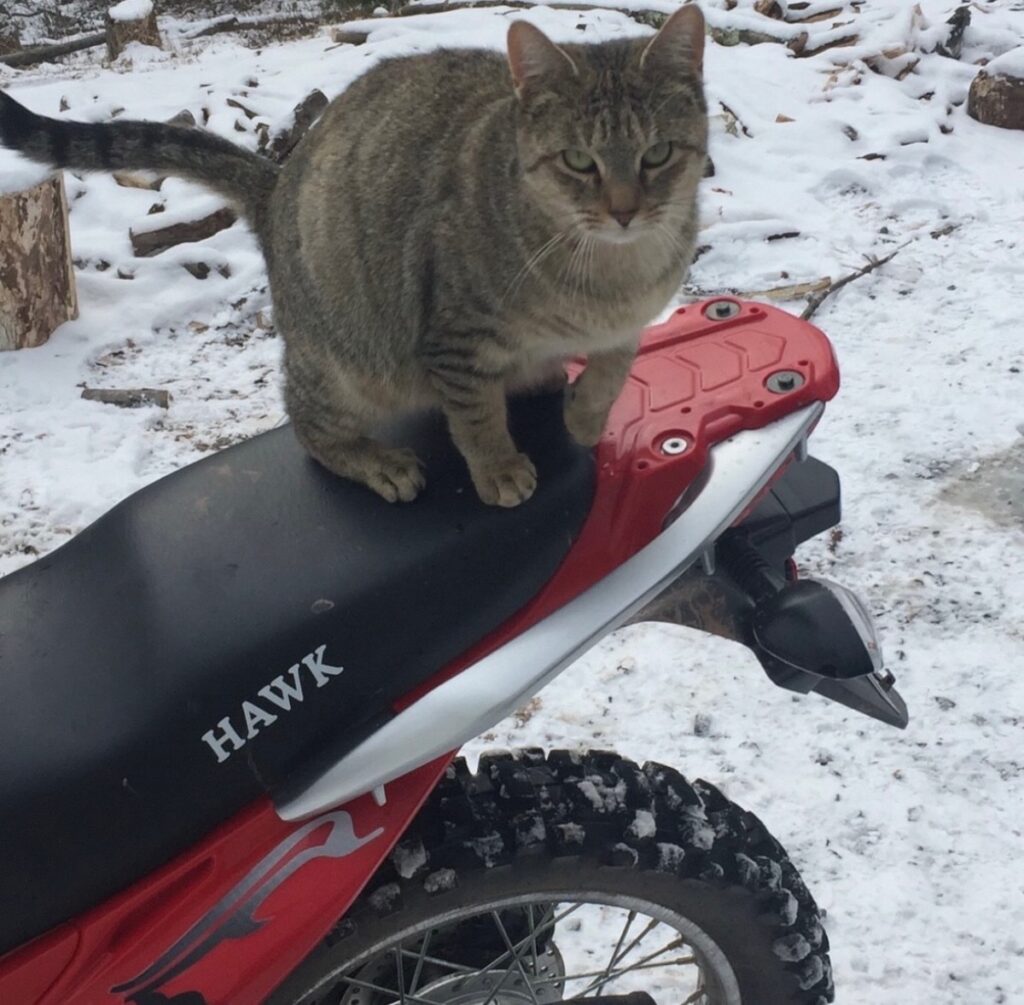 When we moved two hours away from the city we did not think we would be involved in any cat rescue, but boy were we wrong. Our first year living in the woods we started getting a frequent visitor. We ended up calling the friendly cat “Bob” and though he surely belonged to someone. Bob would come by often, hang in front of the garage, even jump on the motorcycle once, roll around, and then just as quickly, leave.